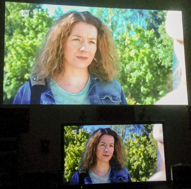 Asettelin JVC:n DLA-X35 -projektorin tykkihyllylle sunnuntaina. Lyhyen koepolton jälkeen maanantai meni TV-tallennusten katselussa ja pienten säätöjen tekemisessä. Laite on käytetty, joskin priimakuntoinen, joten asetukset olivat jo valmiiksi seinälleni varsin sopivat. Naurun tasapaino ja pari jaksoa Murdochin murhamysteerejä (Miksi aina murha? Miksei Murdochin omaisuusrikokset?) osoittivat, että Yleisradion HDTV-lähetykset ovat laadukkaita. Sunnuntain pikatesti myös osoitti, että yksi kokoelmani aarteista - Leaving Las Vegas -HD DVD - on teknisesti valitettavan heikkolaatuinen. En jaksanut katsoa koko elokuvaa yötä vasten, mutta kyse on edelleen 5/5-elokuvasta.